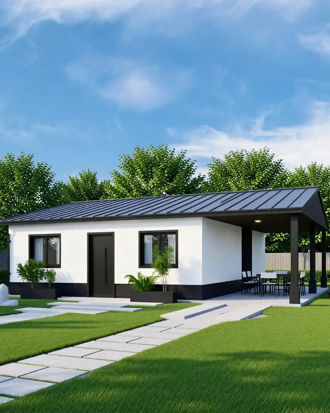 El precio incluye la estructura completa de la vivienda, puertas, ventanas, instalación eléctrica básica, sanitarios y el montaje en tu terreno. No incluye la platea de hormigón, que debe ser preparada por el cliente según nuestras especificaciones.